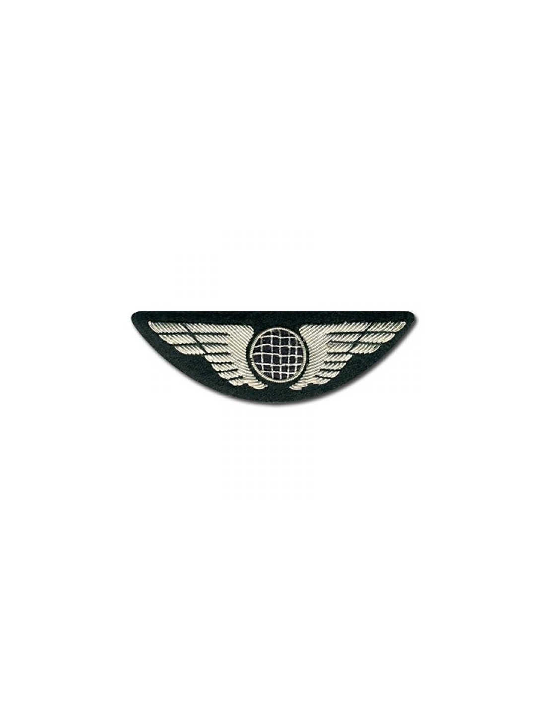 Pilot Wing with a SIMPLE SILVER GLOBE, embroided on BLACK felt. It will perfectly fit your uniform, shirt or flight suit, once you sew it to your uniform.